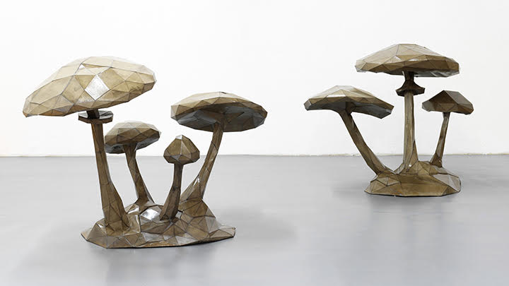 Two Groups of Mushrooms | 2014 | Cardboard, expoxy resin, 4 transducer, 3 mp3 player. 101 x 120 x 70 cm and 102 x 118 x 82 cm